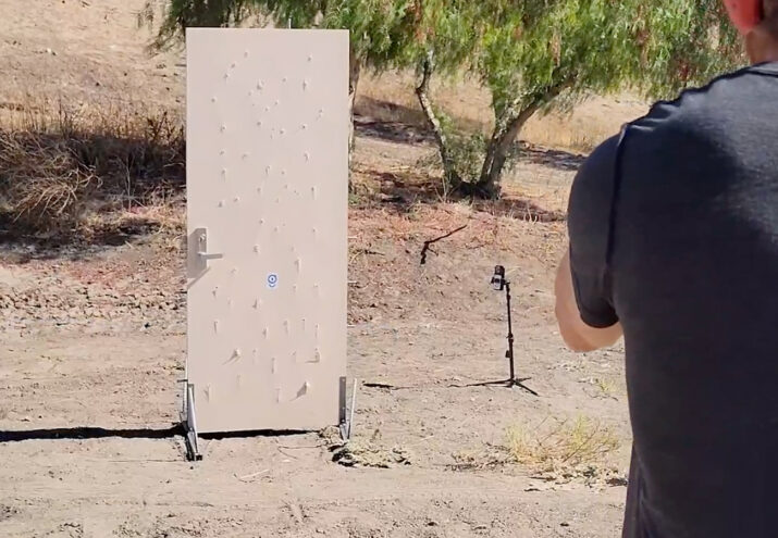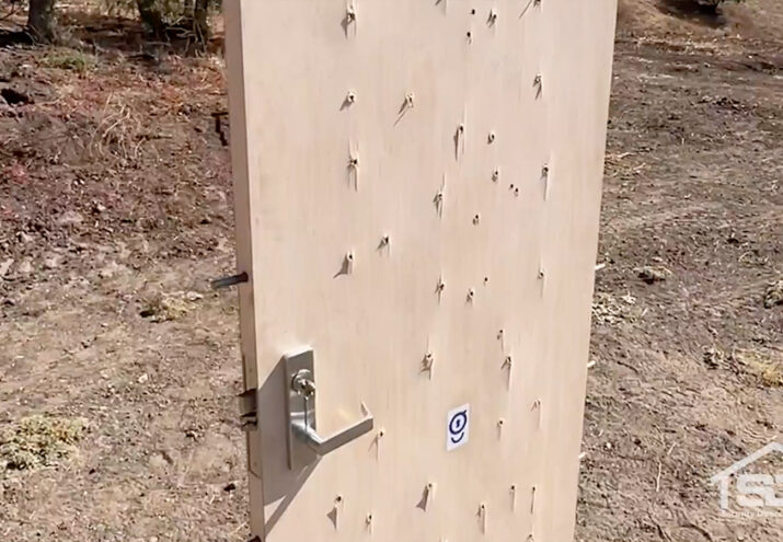 Earlier this year, our research and development team took one of our Residential Doors to our remote secure testing location, where they put the door through a series of breaching tests. The first was the bullet test, conducted by Security Doors & Structures President, David Olsen.