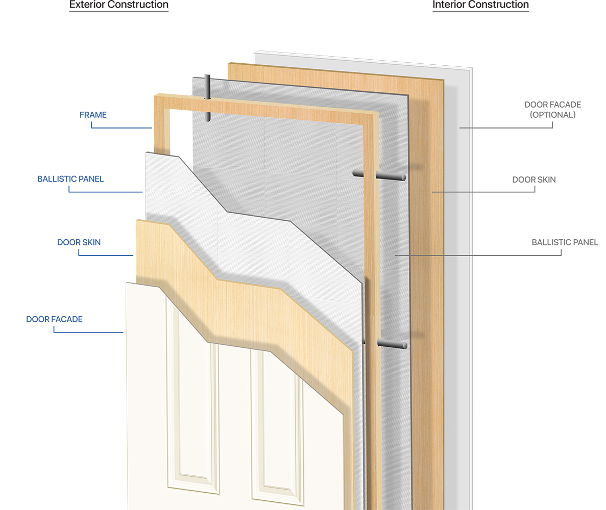 Two layers of ¼ ballistic glass fiber panels LVL 3 UL rated material